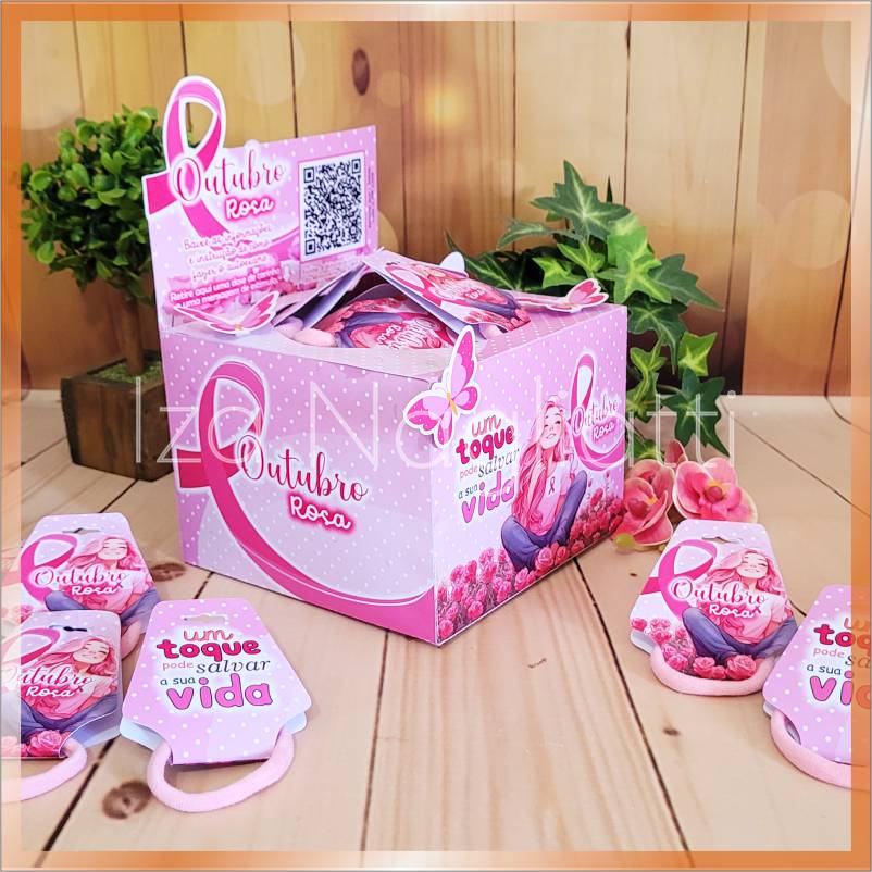 Dispenser pequeno 12 x 9 cm com tag para xuxinha – outubro rosa
