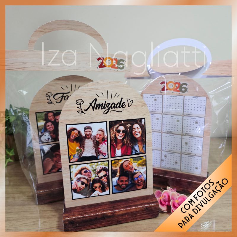 Porta fotos no estilo madeira com calendário 2026