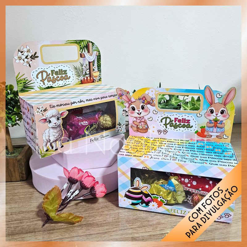 2 Caixinhas de alcinha com visor – Páscoa coelhos e cristã